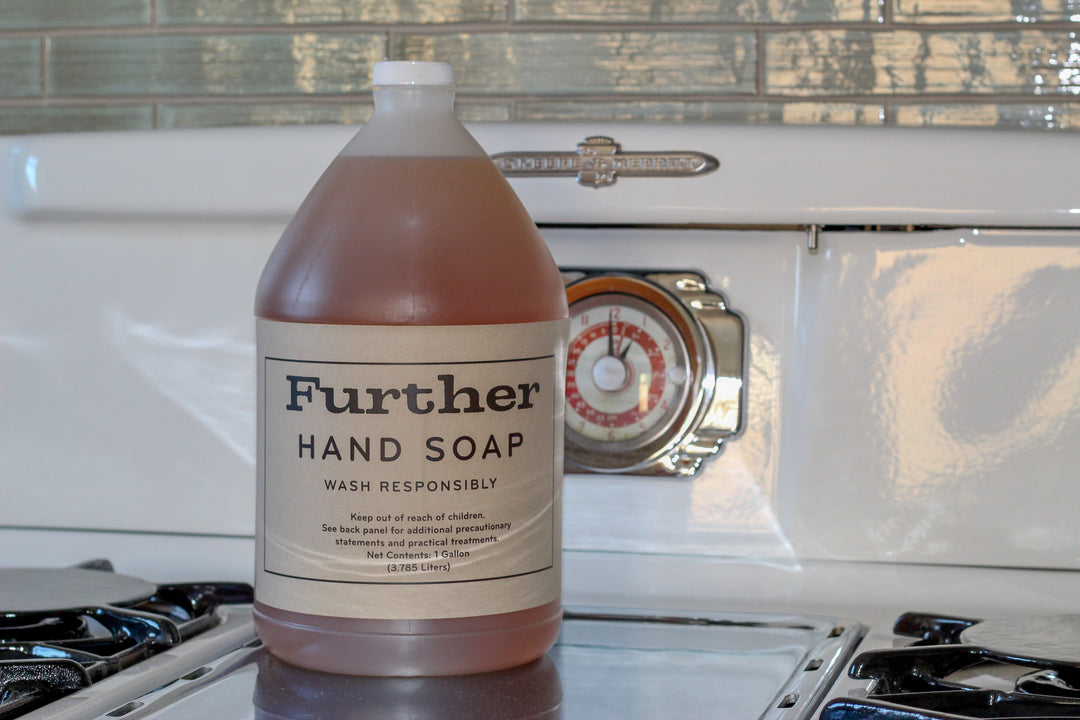 And now, no more tossing your empty bottles of Further Soap in to the recycling bin – now you can simply refill! As a reminder, 1 gallon = 128 ounces! What’s more? Now you can SUBSCRIBE & SAVE and never run out of Further again! See below for details.