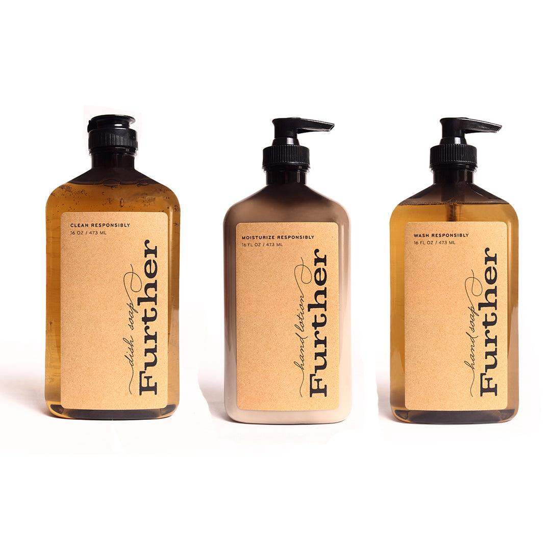- 16oz Further Dish Soap + 16oz Further Hand Soap + 16oz Further Hand Lotion